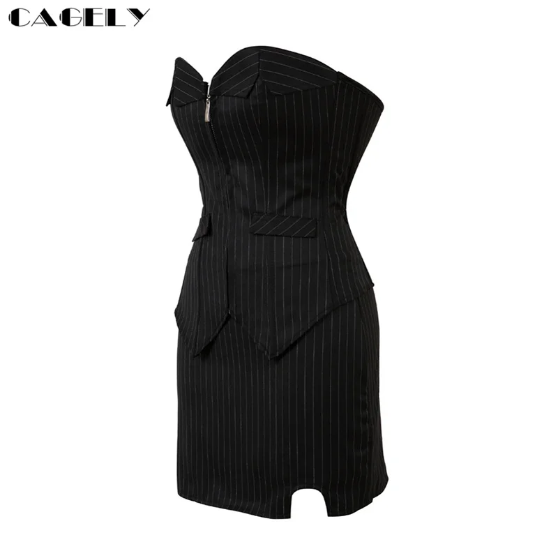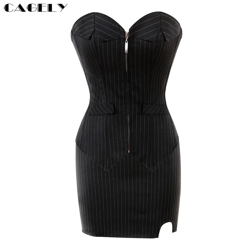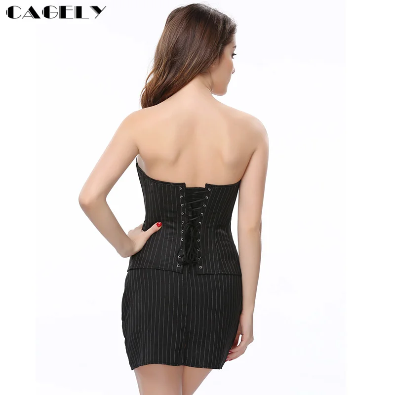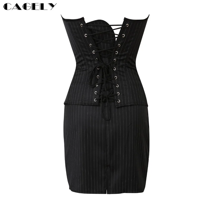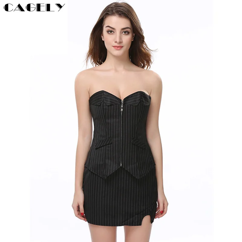 Комплект женского платья OL, корсет на молнии с косточками, мини-юбка, стринги, 3 шт., бюстье на завязках, облегающие наряды
