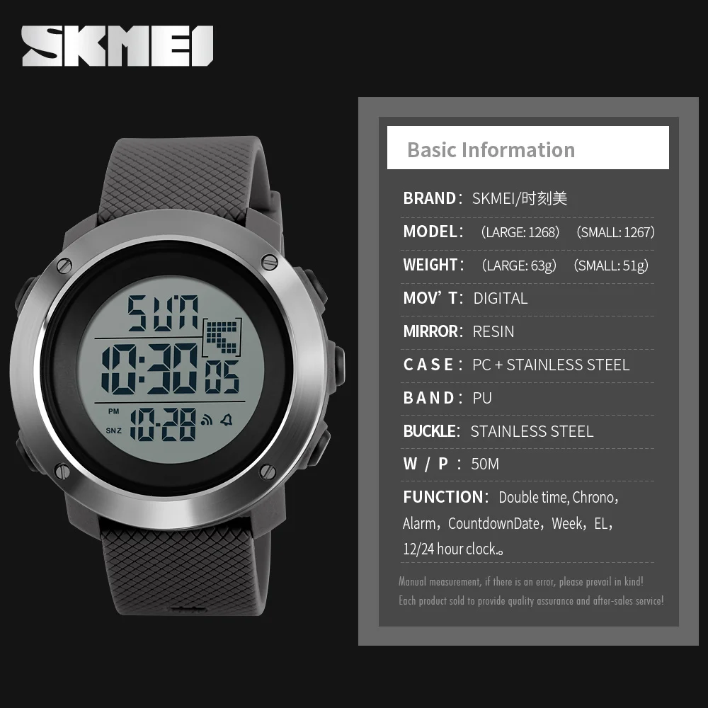 SKMEI мужские цифровые часы 3 раза обратный отсчет 5Bar водонепроницаемые наручные часы мужские спортивные часы Relogio Masculino 1267 1268 часы