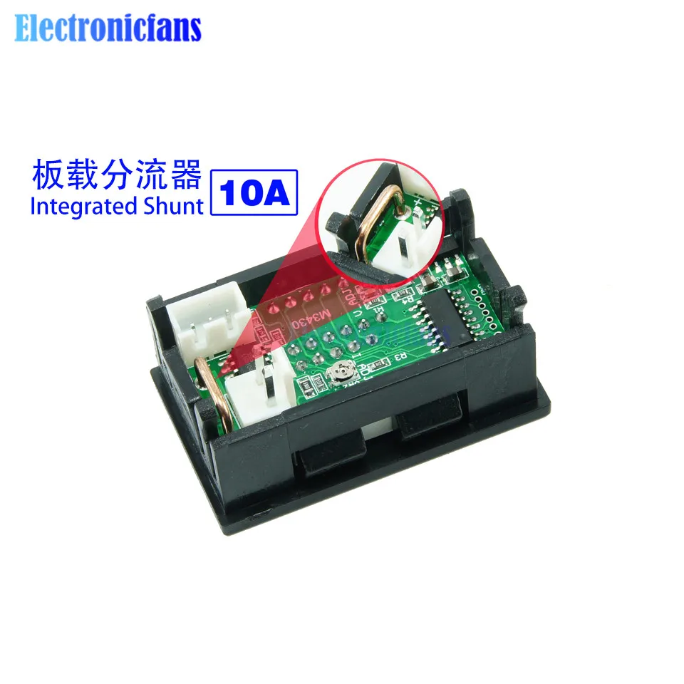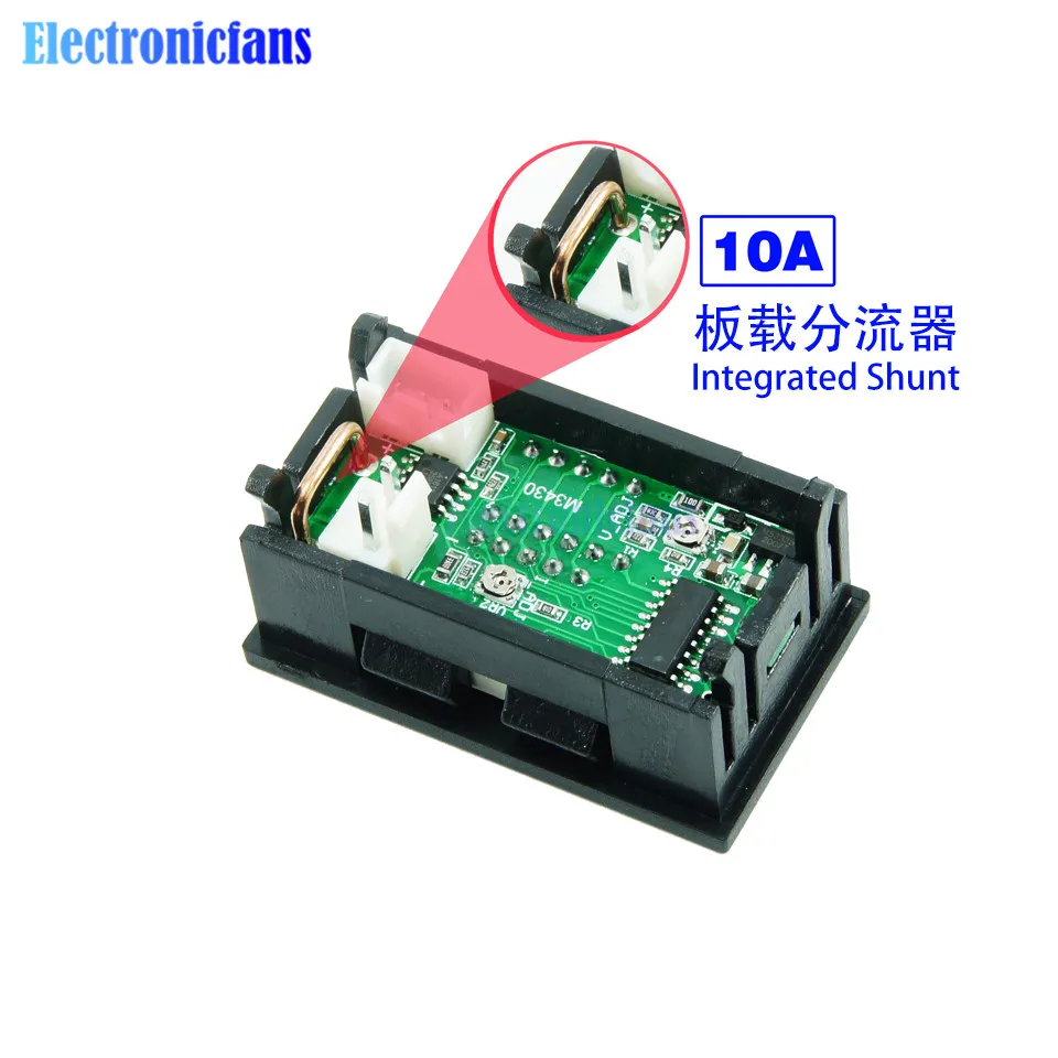 Мини-Цифровой вольтметр, амперметр, постоянный ток 100 в, 10 А, панель, амперметр, измеритель тока, 0,56 дюйма, синий + красный, двойной светодиодный дисплей с линиями