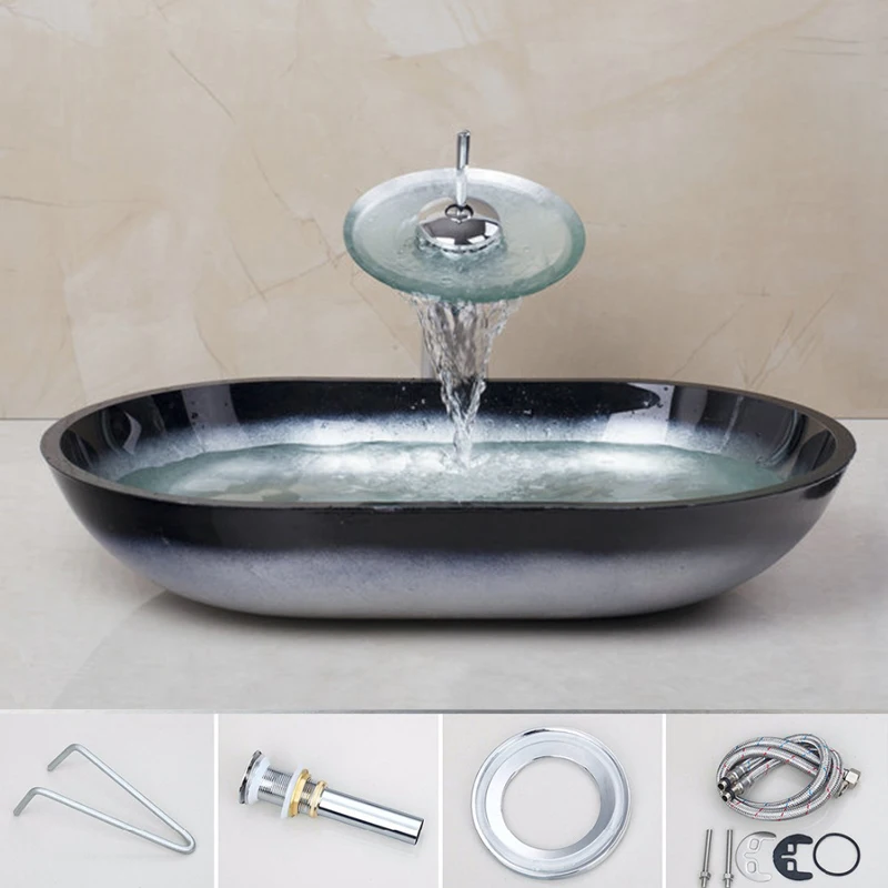 Элегантный европейский дизайн современного искусства Роскошное объемное творение Высококачественная конструкция из закаленного стекла Над установкой счетчика Хромированный всплывающий слив в комплектеЧто входит в комплект: