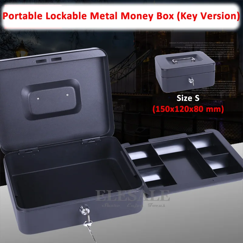 Высококачественный Мини-ящик для наличных, размер S, 6 дюймов, запираемый сейф, прочная сталь, с 2 ключами и лотком, 15x12x8 см