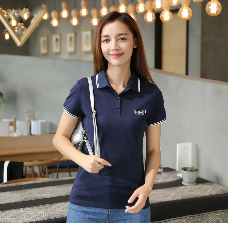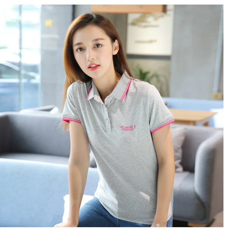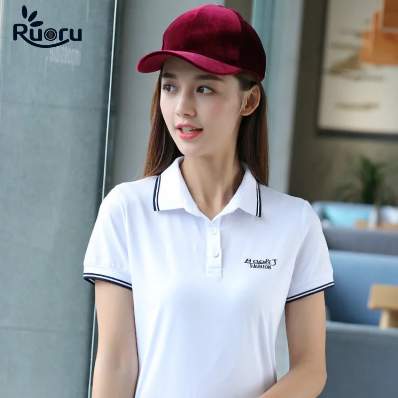 Рубашка-поло Ruoru однотонная, женская брендовая одежда, повседневная облегающая женская рубашка-поло, летняя одежда для работы, белая, серая одежда, поло для девочек