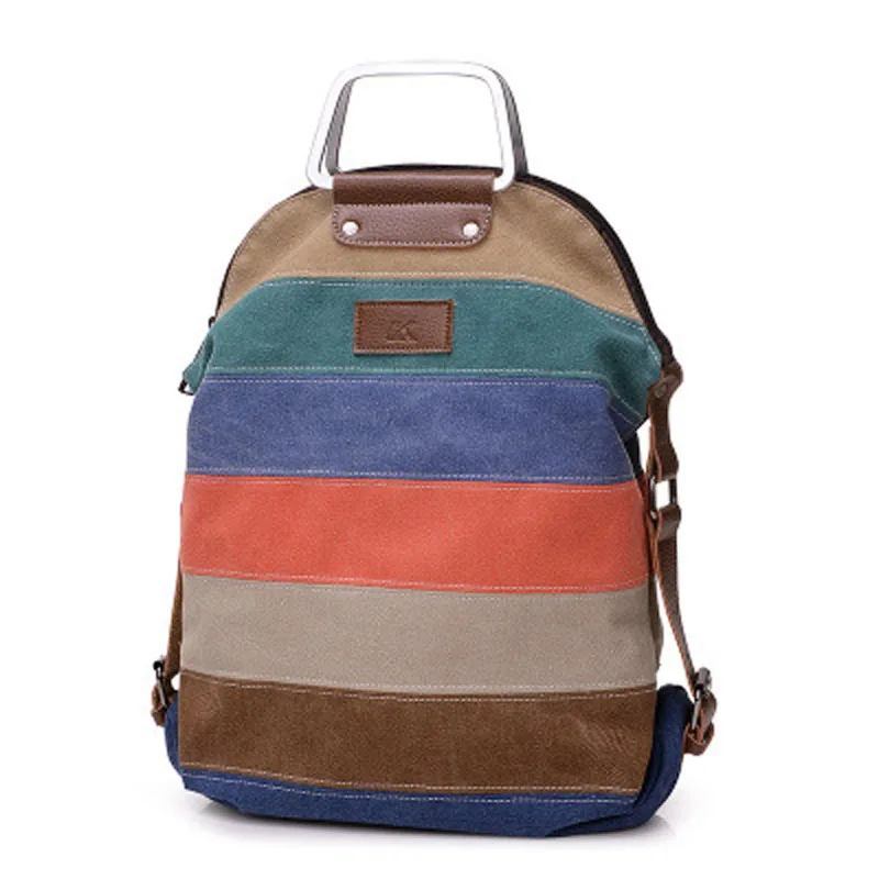 Женский холщовый рюкзак KVKY, многофункциональный Радужный женский рюкзак в полоску в этническом стиле, лоскутный школьный ранец через плечо, сумка B842