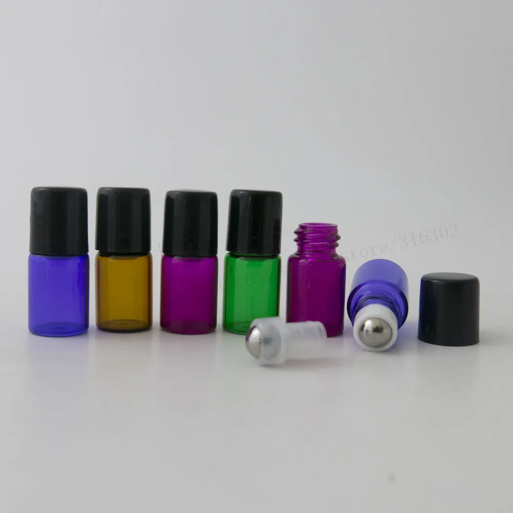 Пустой многоразовый стеклянный рулон 50x1 мл 2 мл на бутылке с роликом из нержавеющей стали, маленький валик для эфирного масла, бутылка для образцов