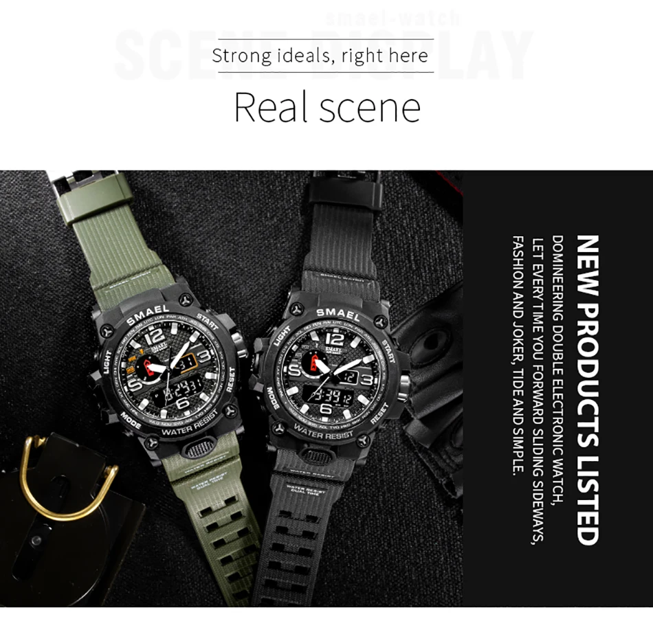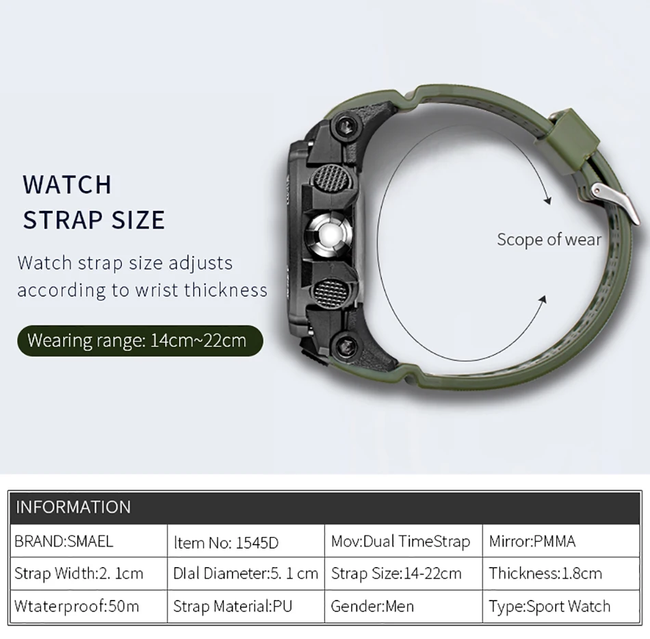 SMAEL, лидер продаж, брендовые роскошные часы с двойным дисплеем, м...