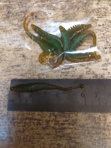 Пришло за 2 недели в Заинск (Татарстан). Ох¥¡тельные червяки! Беру не первый раз. Сильный запах креветки, который не смывается за один раз. Окунь дуреет с них. По игре напоминает пиявку. Также берет голавль. Рекомендую продавца! Берите, не пожалеете!