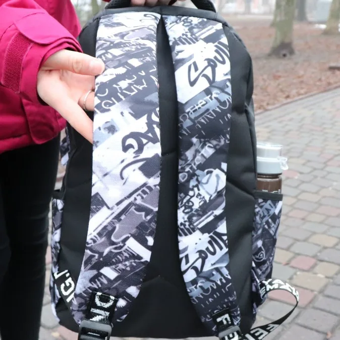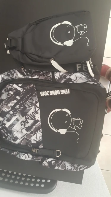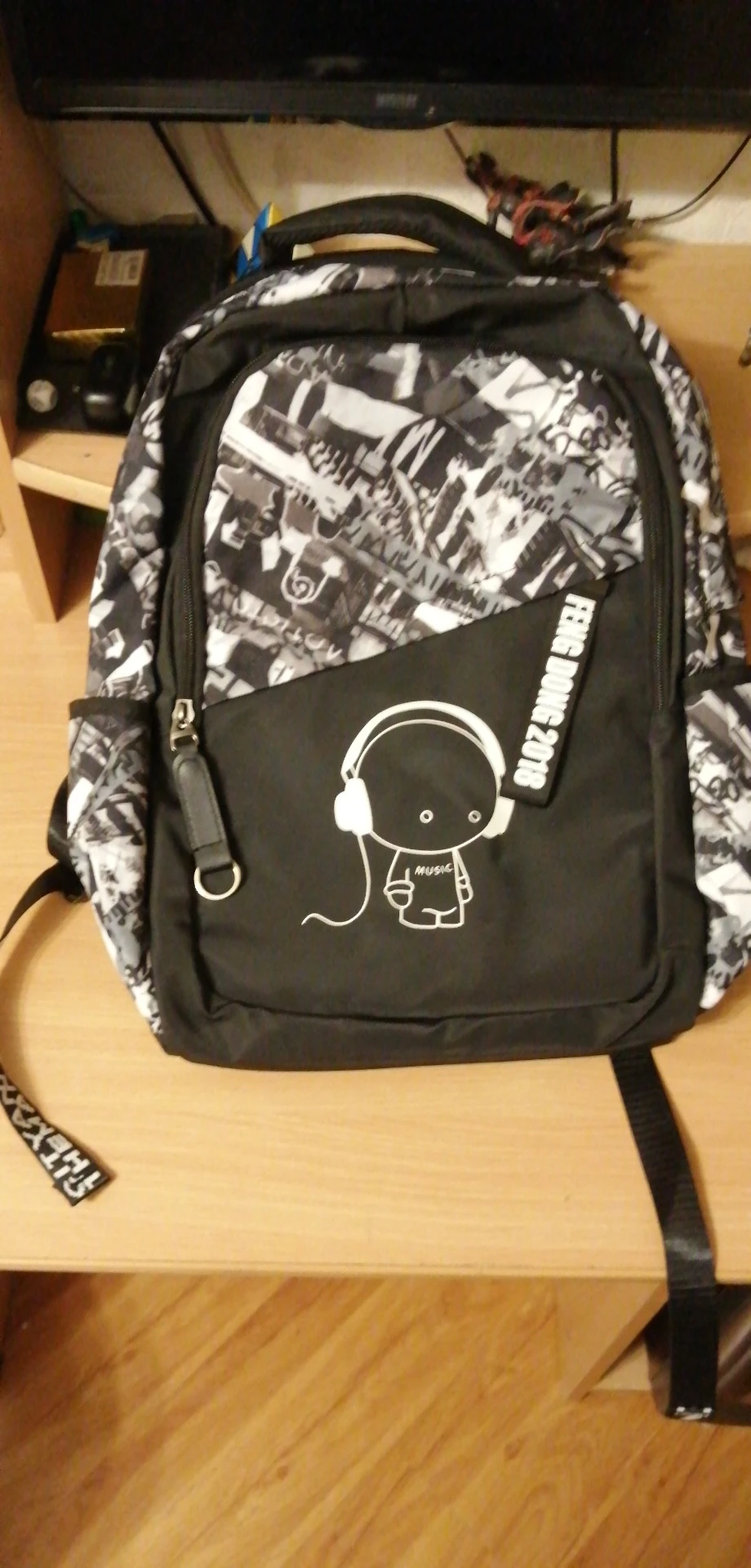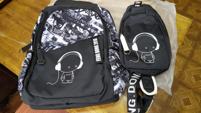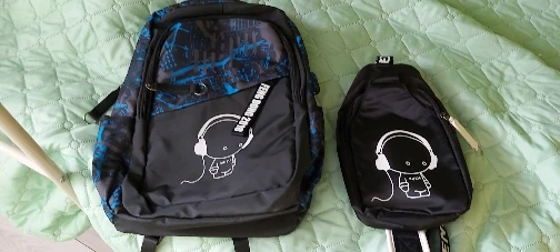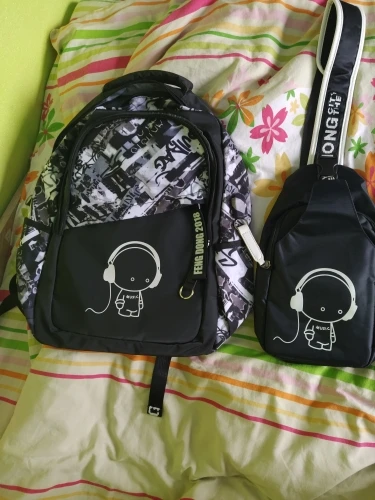 Рюкзак отличный, плотный материал, рисунок четкий, яркий. Купила сыну 12 лет ходить в школу, он доволен, все помещается, много отделений. Лямки немного скользят по одежде. Маленькая сумочка очень прикольная, сын ходит с ней гулять, помещается небольшая бутылка воды, колонка, телефон, павербанк.