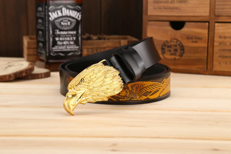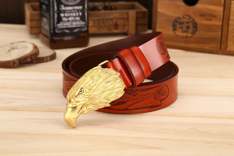 Ремень мужской из натуральной кожи, винтажный, с изображением головы орла