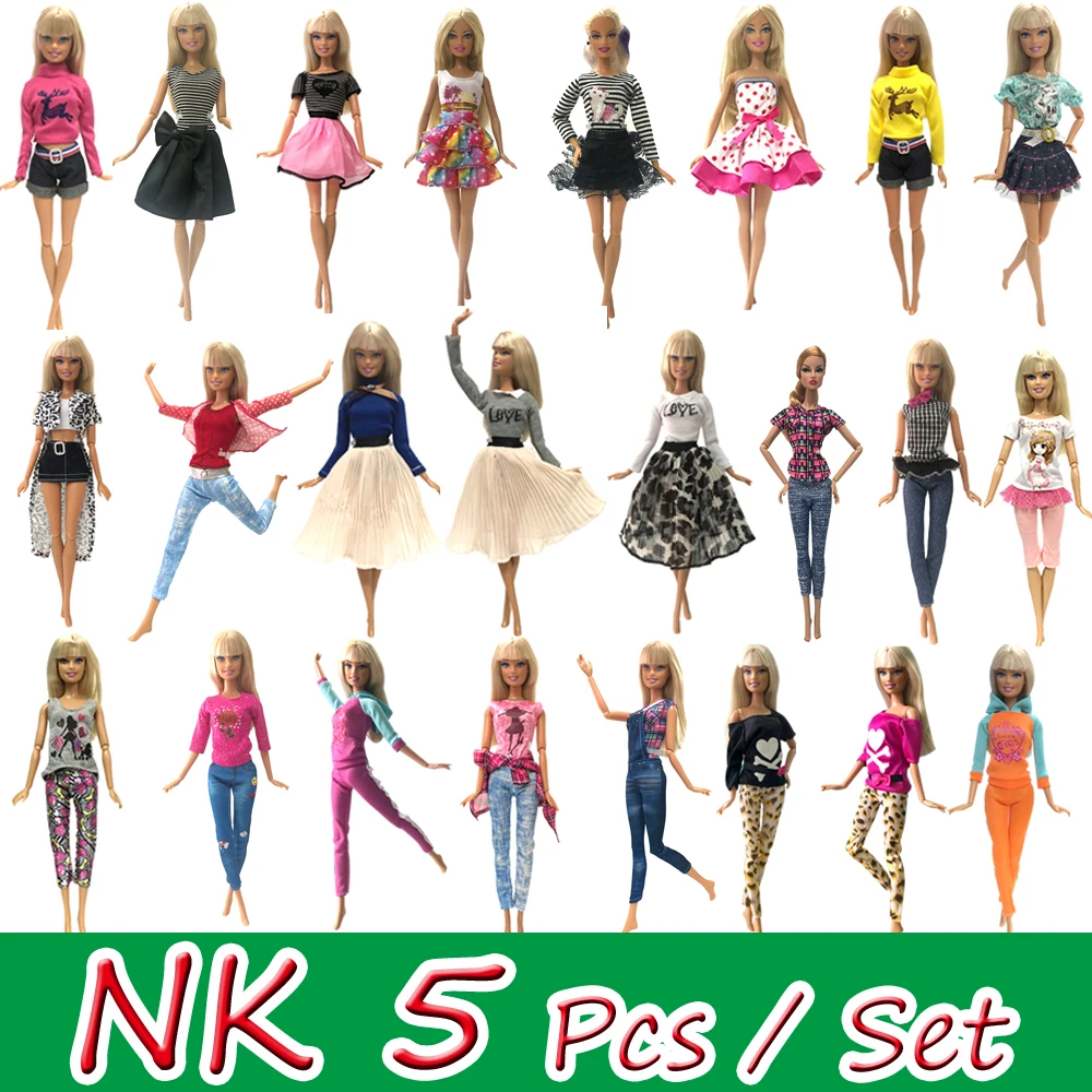 NK, 3 шт. или 5 шт.компл., модные наряды для кукол, повседневная одежда, платье, рубашка, юбка, аксессуары для кукол Барби 5G JJ
