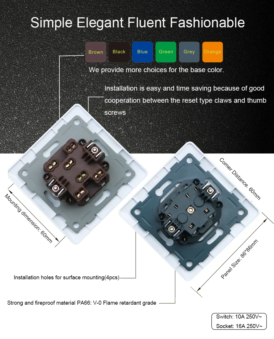 Максимальное напряжение: 110 В-250 В переменного тока Материал панели: рамка из закаленного стекла Размер изделия: 86*86 мм