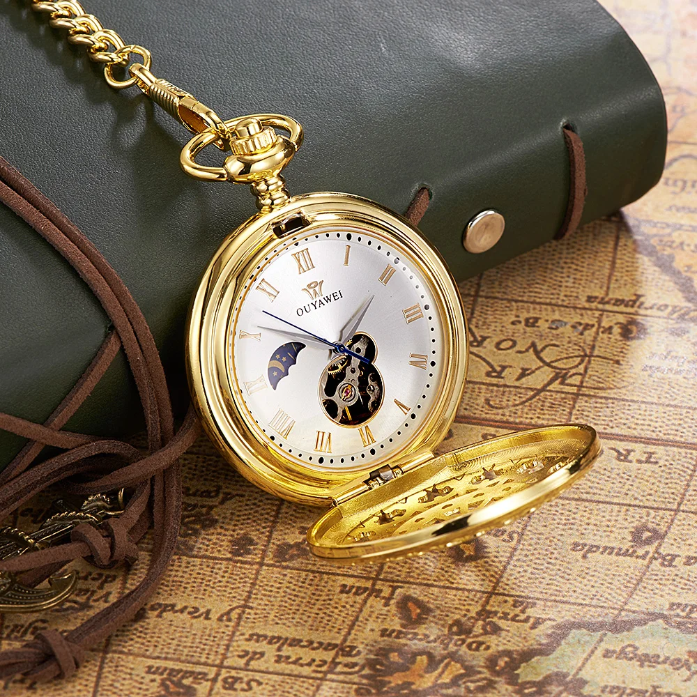 Часы-скелетоны мужские карманные, механические, под стальное ожерелье