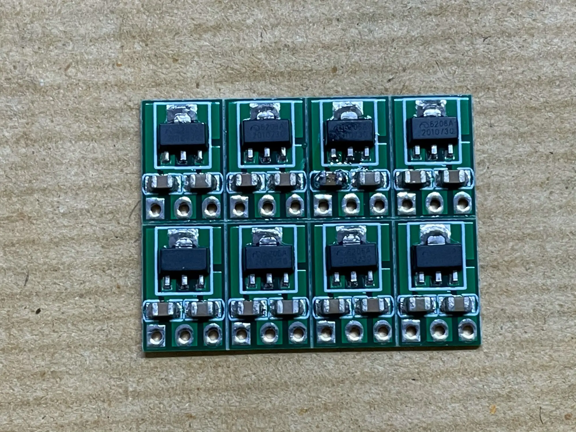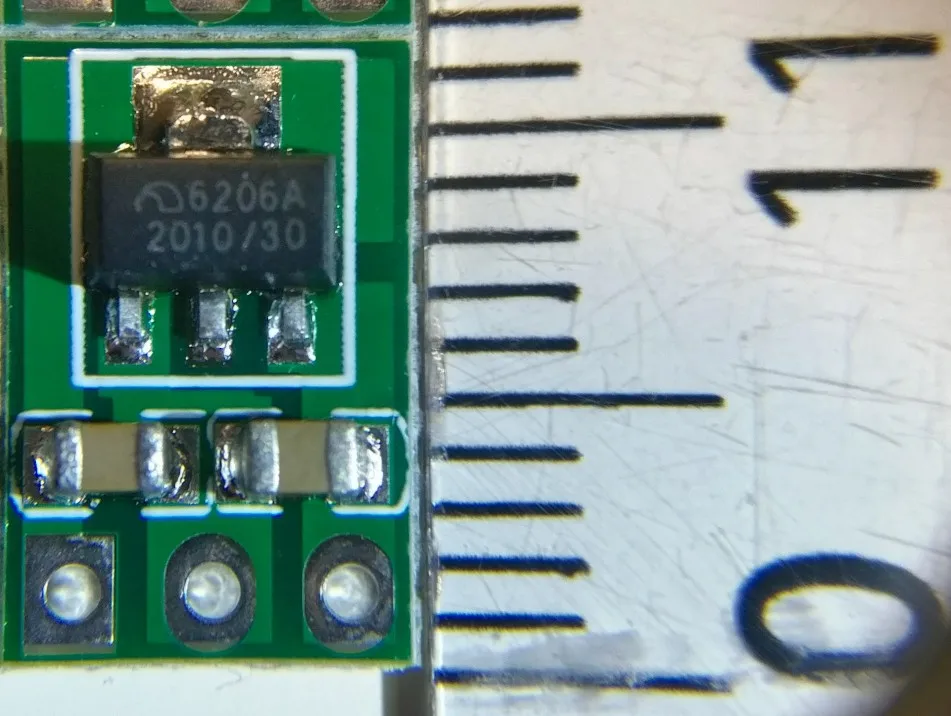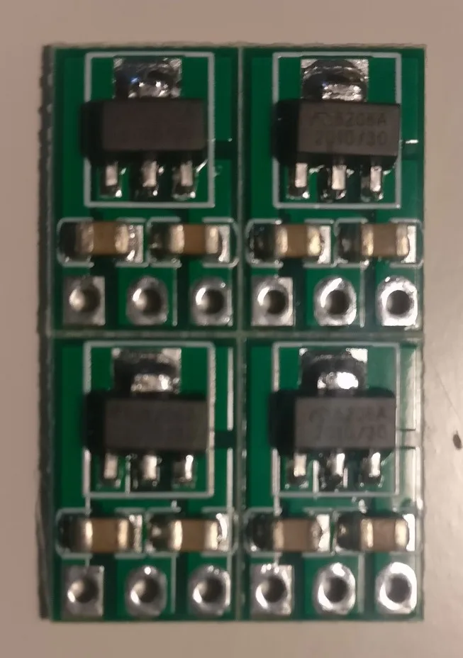 Товар пришел * НЕВЕРОЯТНО * хорошо упакован для его размера (и это цена, на самом деле) 4x XC6206 поломка с конденсатором между вином и GND и другой между Vout и GND. Довольно простой, но аккуратный и готовый: действительно полезно для питания от USB крошечного прибора, ожидая 2 батареи 1,5 В :) Палец вверх для продавца!
