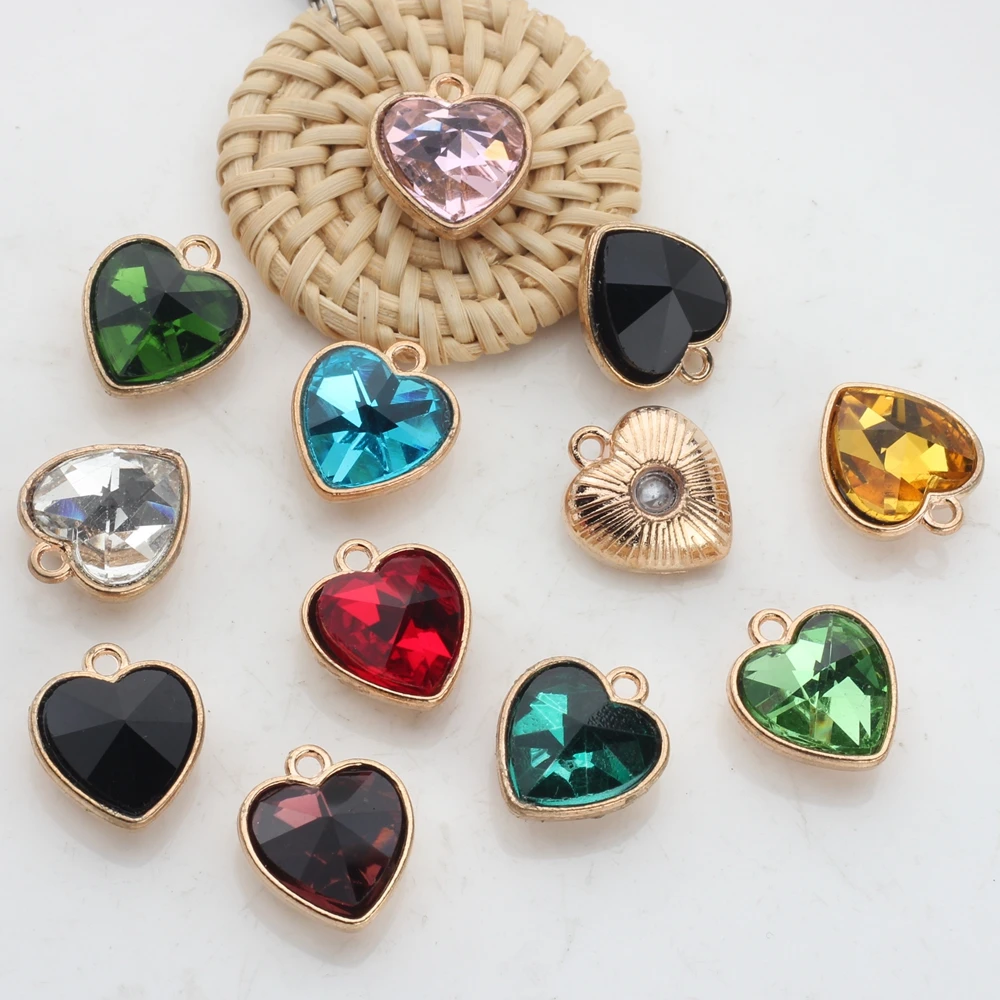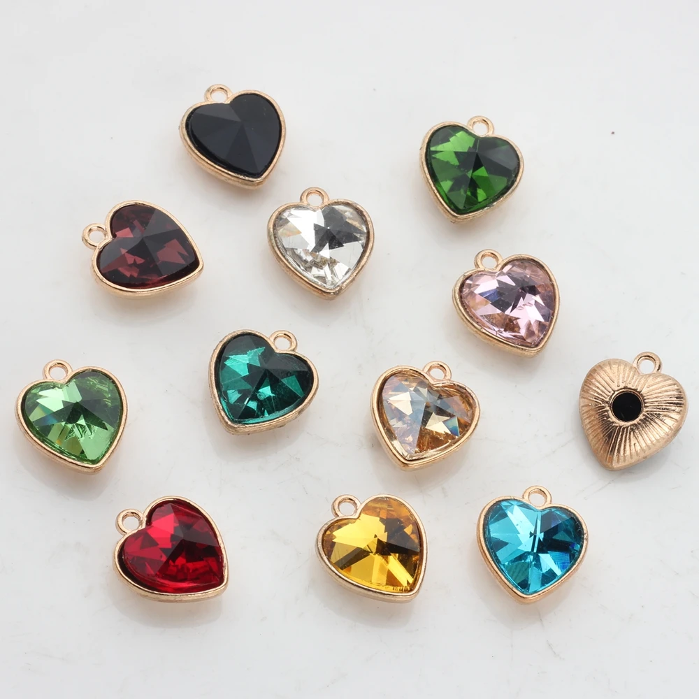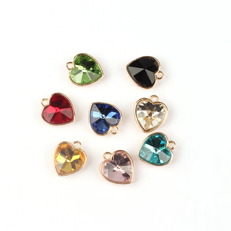12pcslot Colorful Heart Lobster Clasp Crystal Charms 14MM For Glass...