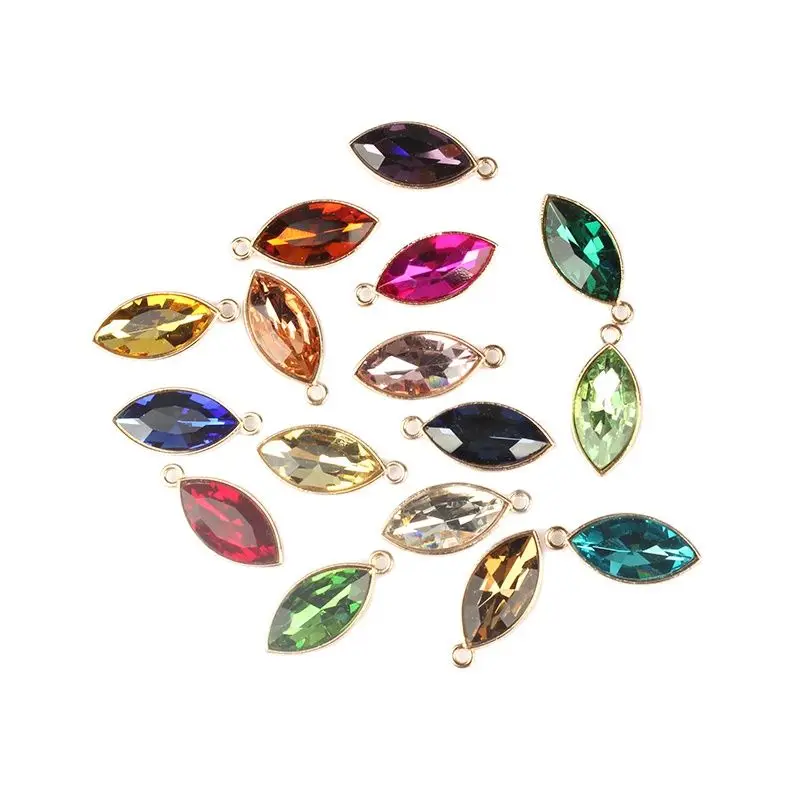 Сплав, красочные кристаллы в форме оливы, Подвески 12 шт.лот 23*11 мм, DIY ожерелье, серьги, браслет, аксессуары