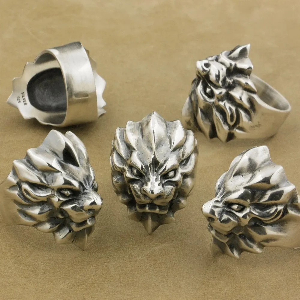 Тяжелый серебро 925 пробы абстрактный Король Лев Кольцо мужское байкер рок панк TA01 США Размер 7 15
