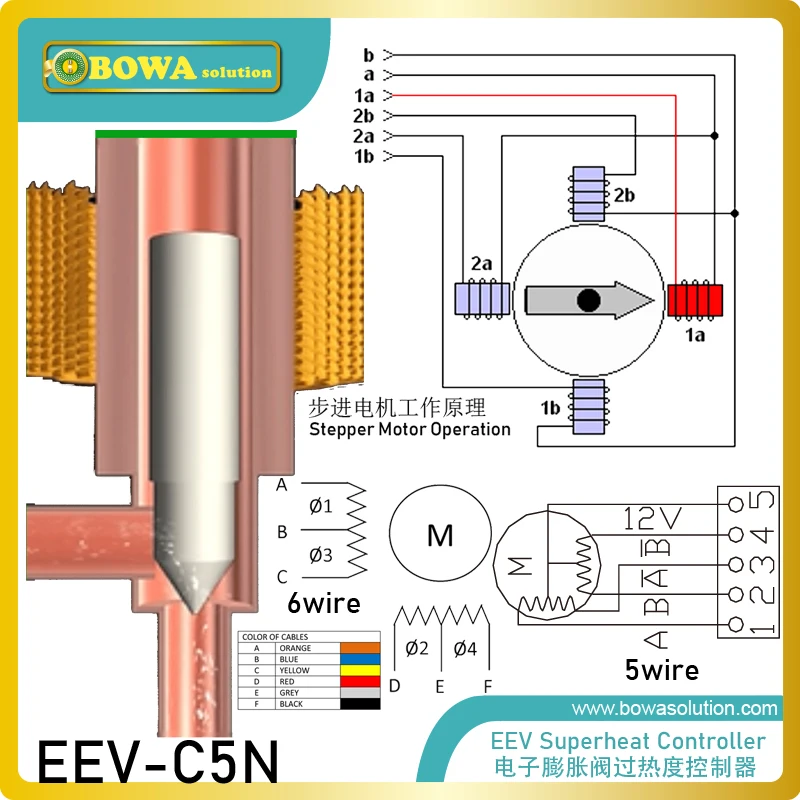 Универсальный и индексированный электронный контроллер расширительного клапана совместим с Danfoss, Carel, Sporlan, Fujikoki, Emerson, Saginomiy , Muller и другими брендами EEV. Подходит для 5 проводов и 6 проводов EEV. Он обеспечивает идеальные растворы для дросселирования в холодильнике, тепловом насосе и кондиционере.