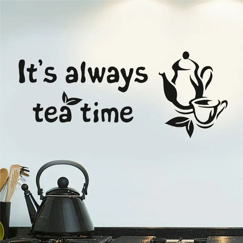 Кухонная настенная виниловая наклейка It's Always Tea Time с цитатами, домашний декор, дизайнерские кухонные наклейки, чайник, чайная чашка, фрески, украшение E524