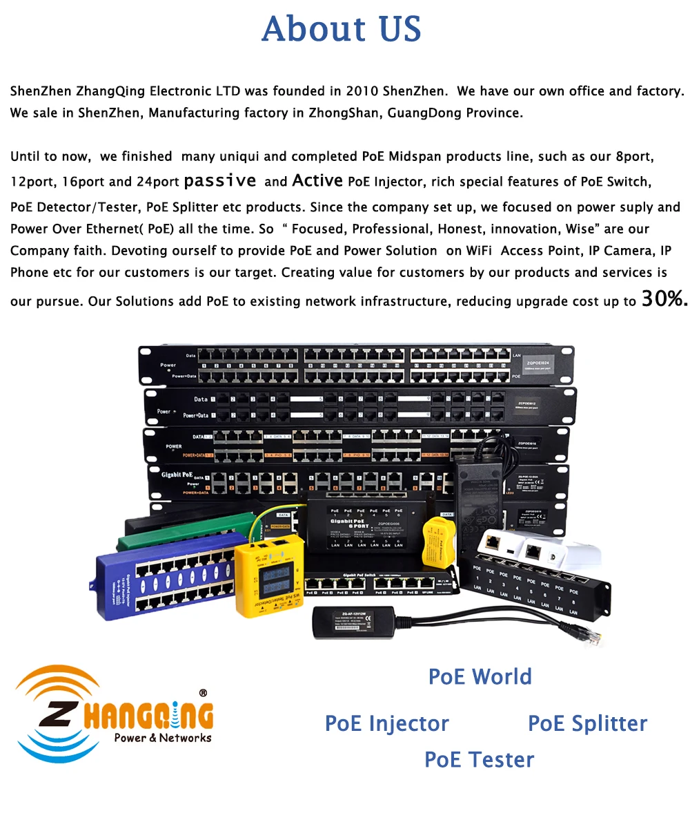 Инжектор ZQPOEIG008 Power over Ethernet (POE) позволяет подключать до 8 устройств удаленно через проводку ethernet до 328 футов (100 метров). Добавьте PoE возможность к любому Ethernet-коммутатору или маршрутизатору. Используйте это устройство для включения питания в Кабель CAT-5, CAT-6 или CAT-7 и устройства питания, такие как камеры, VOIP телефоны и точки доступа Wi-Fi.