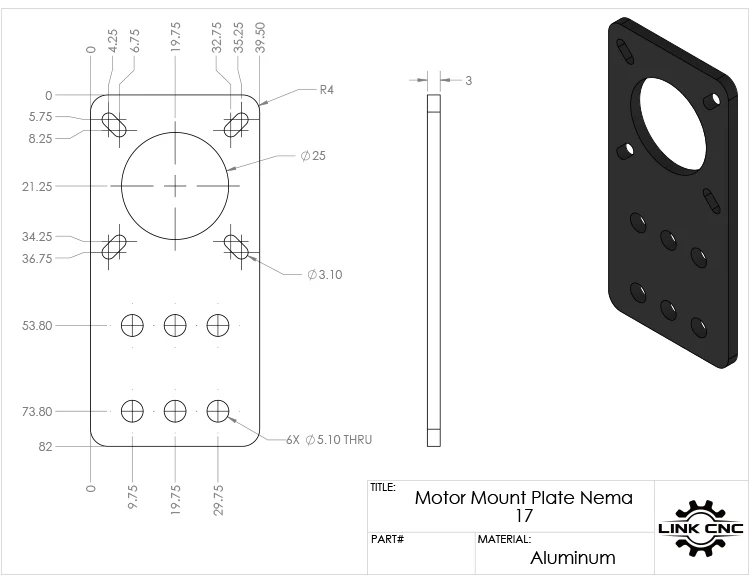 Тип:Алюминиевая пластина для шагового двигателя nema17