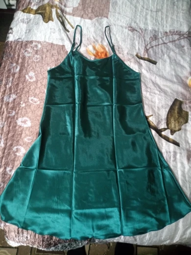 Ночнуха понравилась. Тонкая, мягкая синтетика. Правда на мои параметры 100 82-102 вроде как большевата. Это не беда, можно в пройме ушить. Цвет такой же как на фото, насыщенный зелёный. На рост 172 до середины колена. Довольно длинная, немного не привычно. На моем фото цвет искажен, на самом деле как на фото продавца. Доставили быстро в консолидированой посылке.