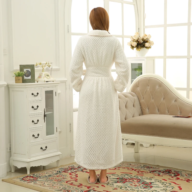 Женские зимние Термальность длинный халат любителей толстые теплые коралловые кимоно из рунной шерсти банный халат размера плюс ночные рубашки для девочек платье подружки невесты халат