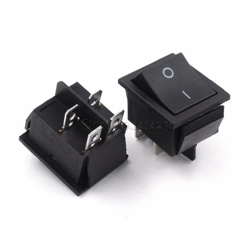 Фонарь 25x31 мм, 4 контакта, 2 положения, 16 А, 250 В, 20 А, В переменного тока, ВКЛ.ВЫКЛ., DPST, черный большой клавишный переключатель