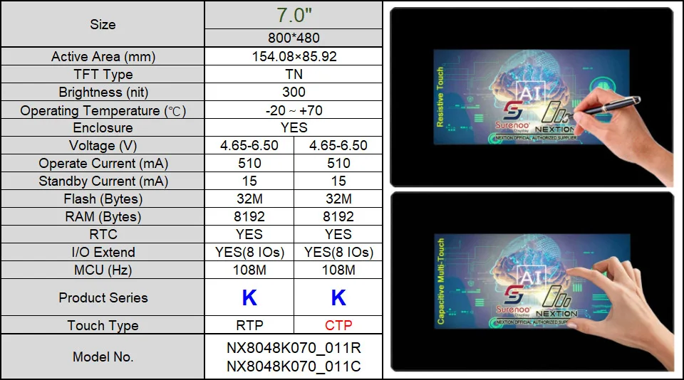 7,0 "Nextion Enhanced HMI USART UART серийный TFT ЖК-модуль Дисплей резистивная емкостная сенсорная панель с корпусом
