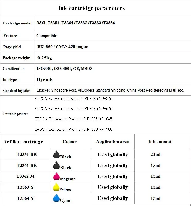 5 упаковок, совместимый картридж для принтера EPSON 33XL Expression Premium XP 530 540 630 640 635 645 830 900