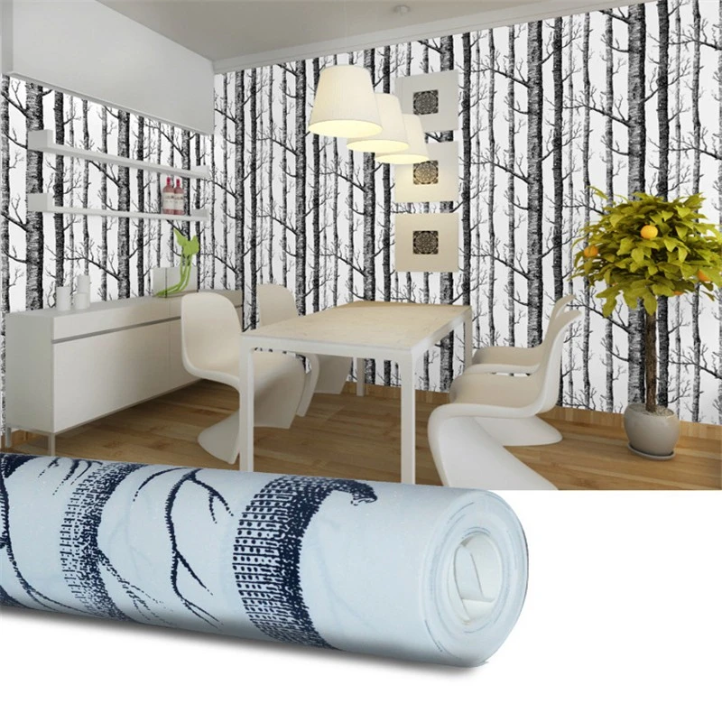 Обои beibehang из нетканого материала в скандинавском стиле с изображением леса, черно-белых деревьев, березового леса, прикроватных диванов