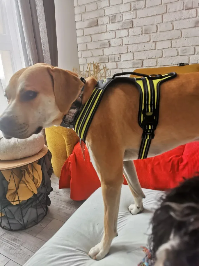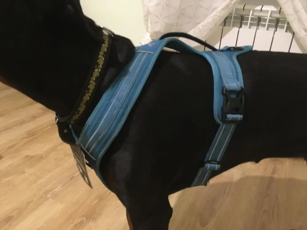 Un arnes muy robusto y solido.El unico inconveniente es que las tiras de delante no se puedan regular y los perros que estan en los limites de una talla a oa otra pues alli la parte delantera queda un poco grande.