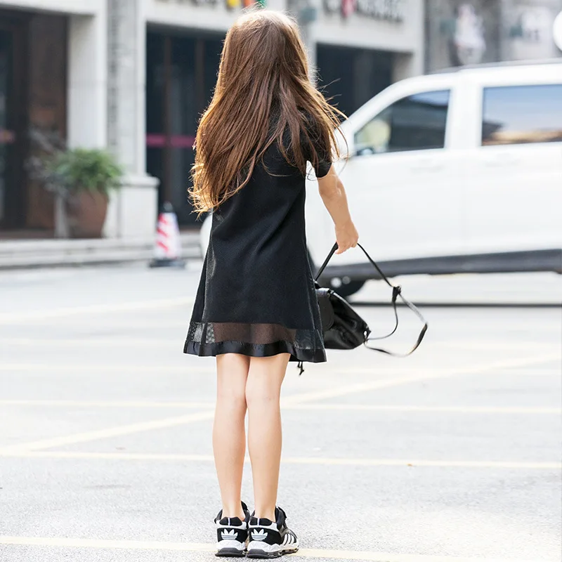 Платье для девочек летнее шифоновое черное платье с расклешенными рукавами для девочек-подростков 8, 9, 10, 11, 12, 14 лет, повседневная одежда для девочек-подростков