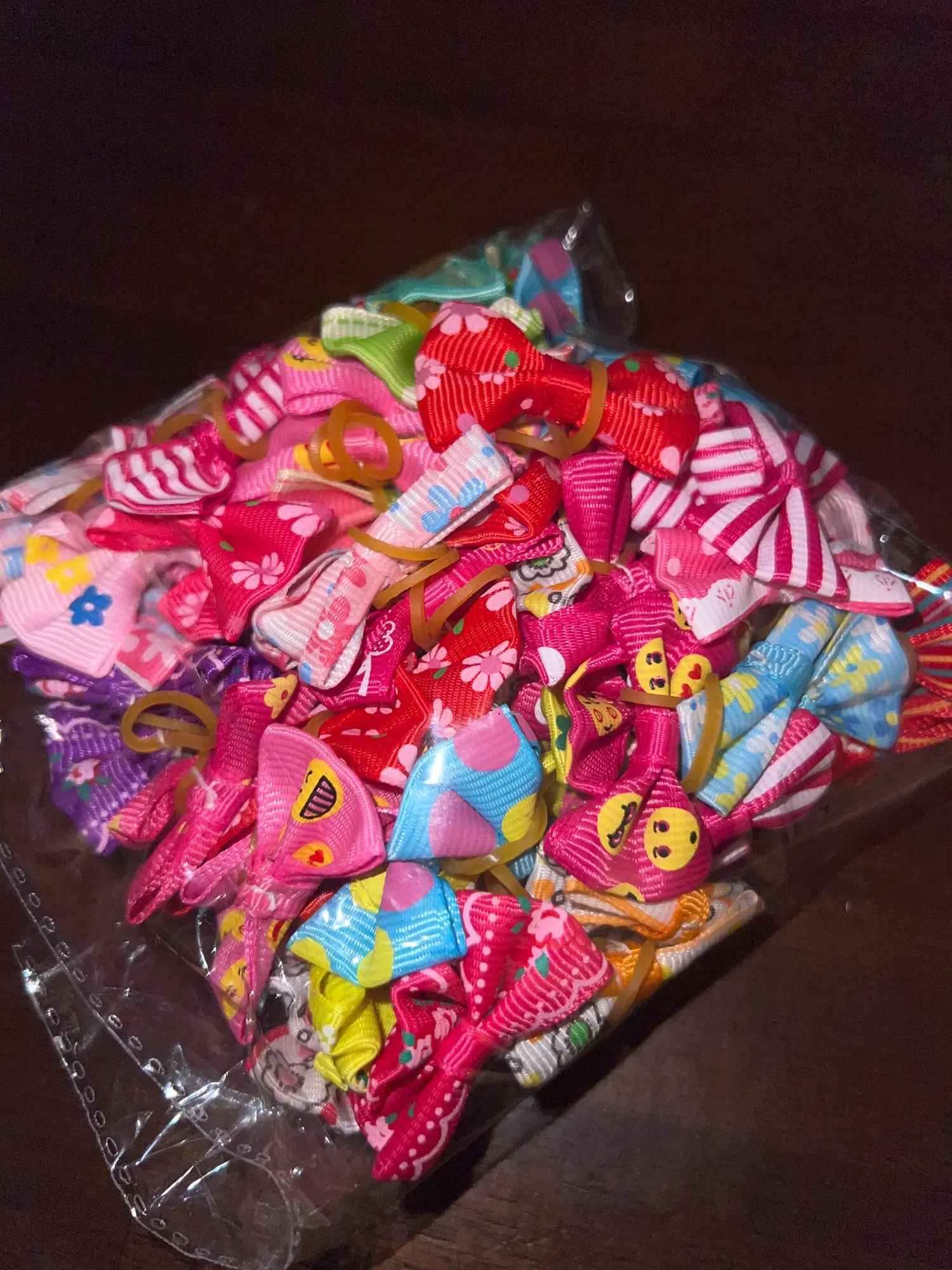 Достойное качество, прочная ткань для бантов, одна Резиновая лента достойного размера и текстуры @-@ идеально подходит для собачьих хвостиков
