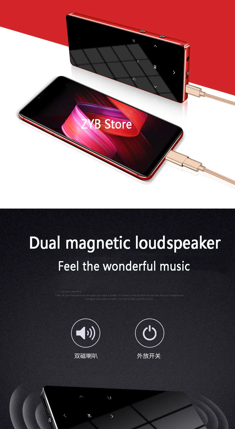 Портативный металлический MP3-плеер со встроенными динамиками, fm-радио, часы, аудио рекордер, flac без потерь, Hi-Fi, спортивный видеоплеер для музыки