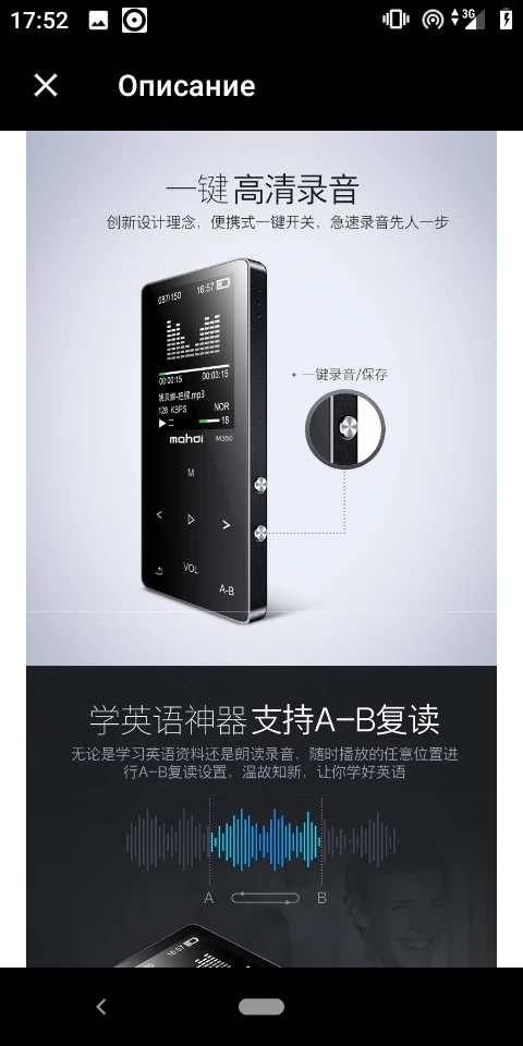 Здравствуйте всём.Хочу написать спасибо,за трепетную работу всего коллектива организации по доставке 5+ с учётом чо я заказал 14 вещей с доного с сайта а плеер был заказан поже всех на 3 дня ,а пришёл раньше всех ,многие прощаются с рабочими и непокинули Китай.Но недостаток есть я заказывал Mohdi m320 а пришёл, очень похоже но не он ну играет нормально.( хотя с равевать не с чем, опыта нет мое мнение)Насайт было написано в характеристиках Махди сейчас Aphel хотя уйдя в описании с кортинками в увидит в конце мохди.
