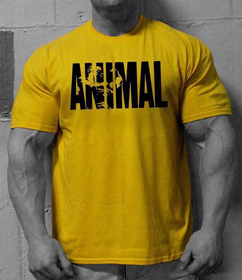 Мужская хлопковая футболка с надписью ANIMAL, с круглым вырезом, мягкая, для фитнеса, упражнений, для лета, разные цвета