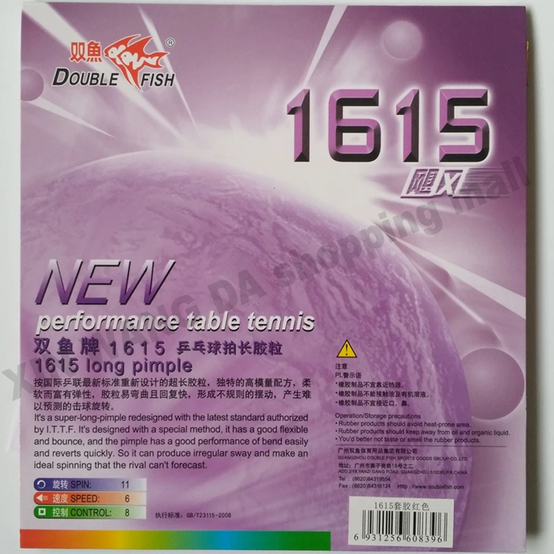 Оригинальные длинные резиновые ракетки для настольного тенниса с двойной рыбой и губкой 1615, ракетки для настольного тенниса с длинной текстурой