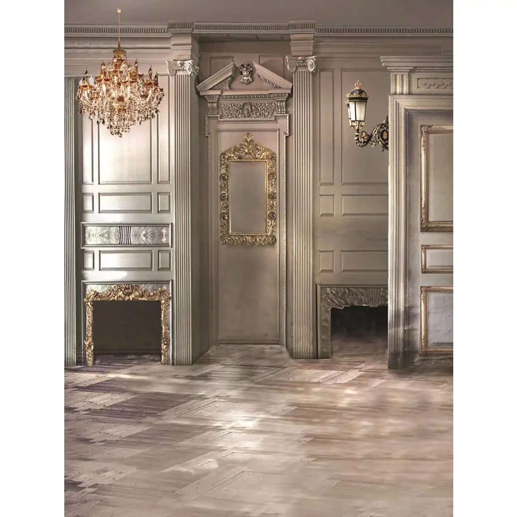 Фон для фотосъемки Allenjoy с Европейским камином и серебряным фоном