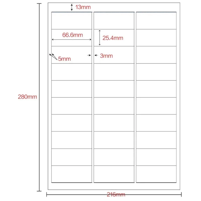 GL-33L 100 листов белая этикетка наклейка 30-up 3000 шт 66,6 мм * 25,4 мм на размер буквы наклейка самоклеющаяся этикетка 3x10