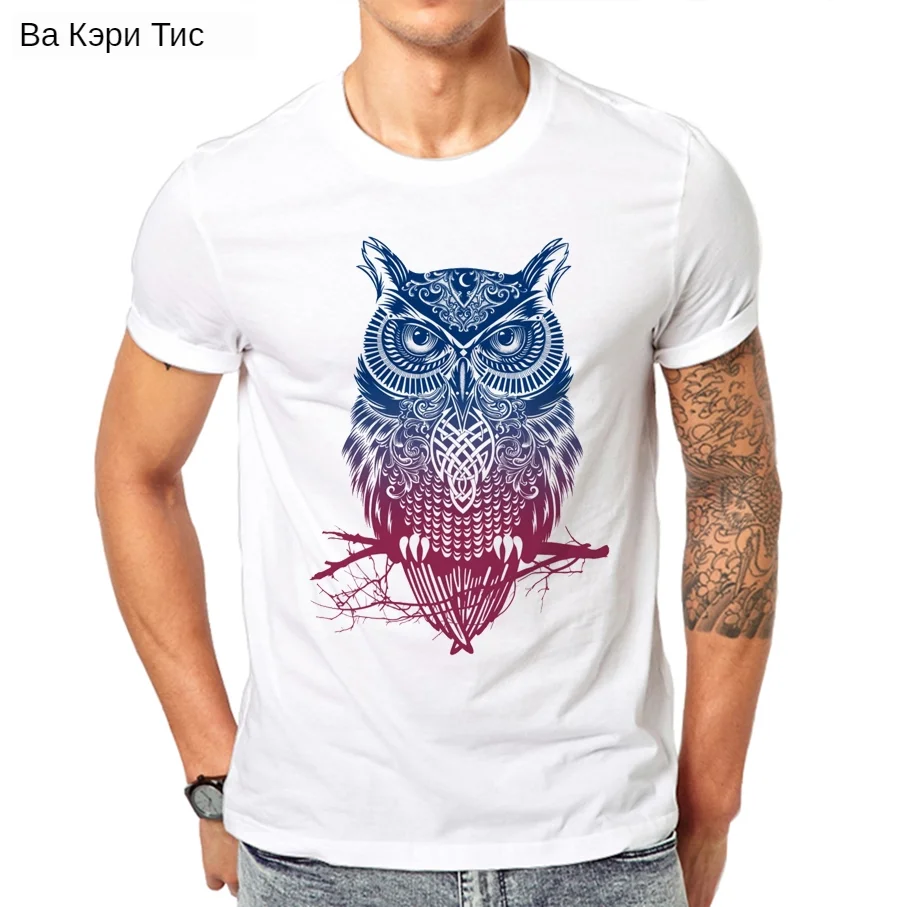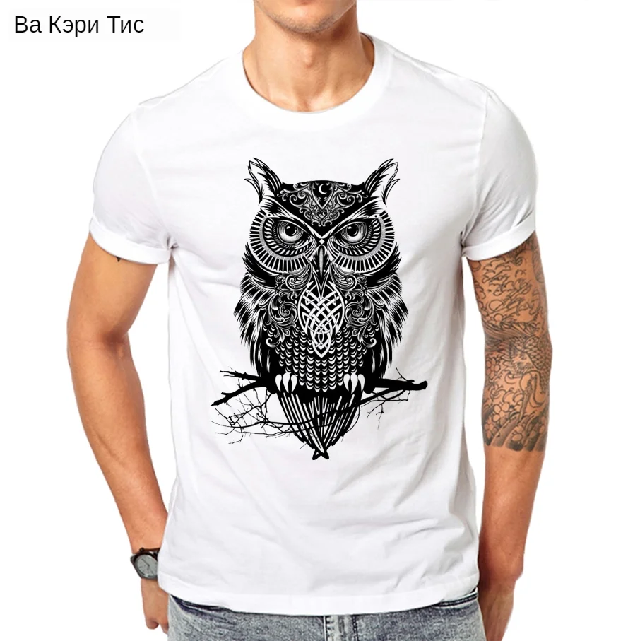Новинка 2022, модные мужские футболки с коротким рукавом, принтом ночного воина, совы, Забавные футболки с татуировками, хипстерские Популярные топы с круглым вырезом