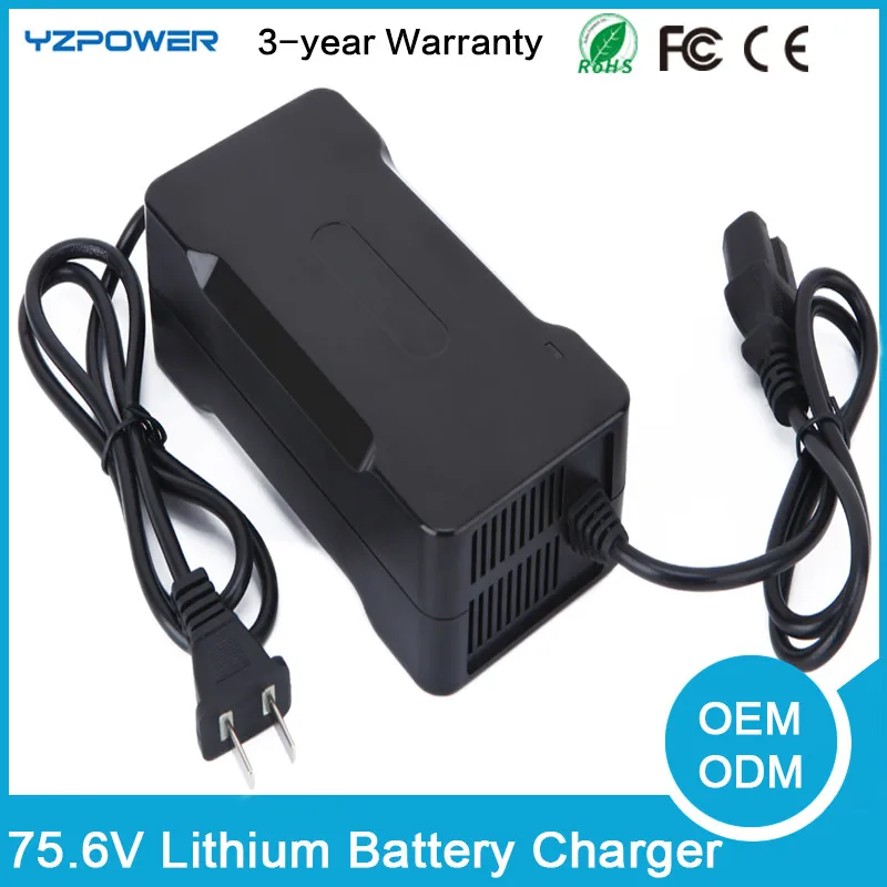 YZPOWER 75,6 V 1.6A 1.8A 2A литиевое зарядное устройство для 18S литий-ионный аккумулятор для электровелосипеда