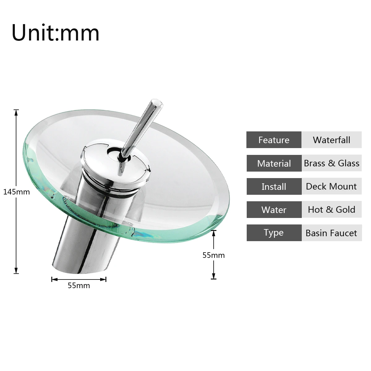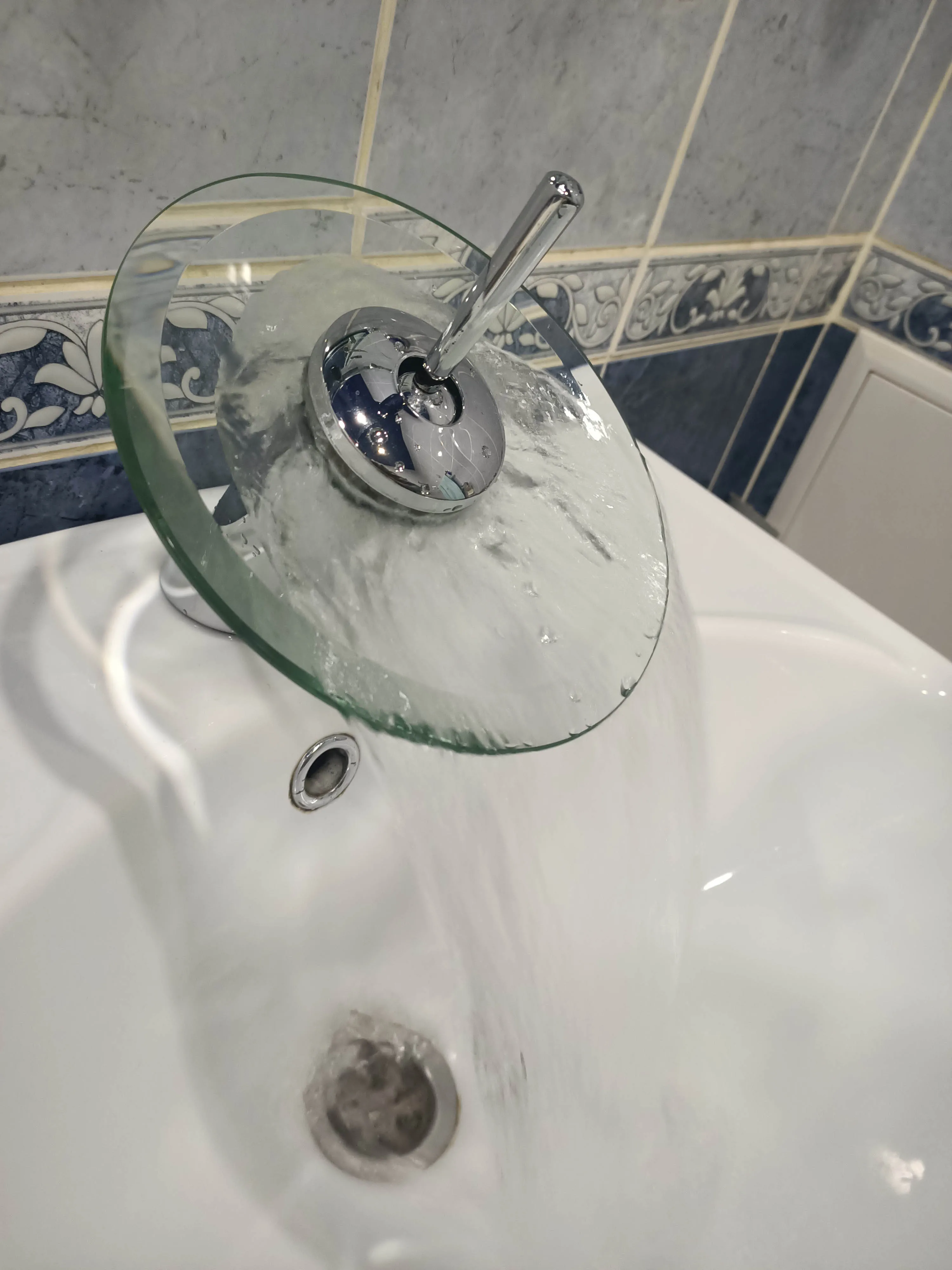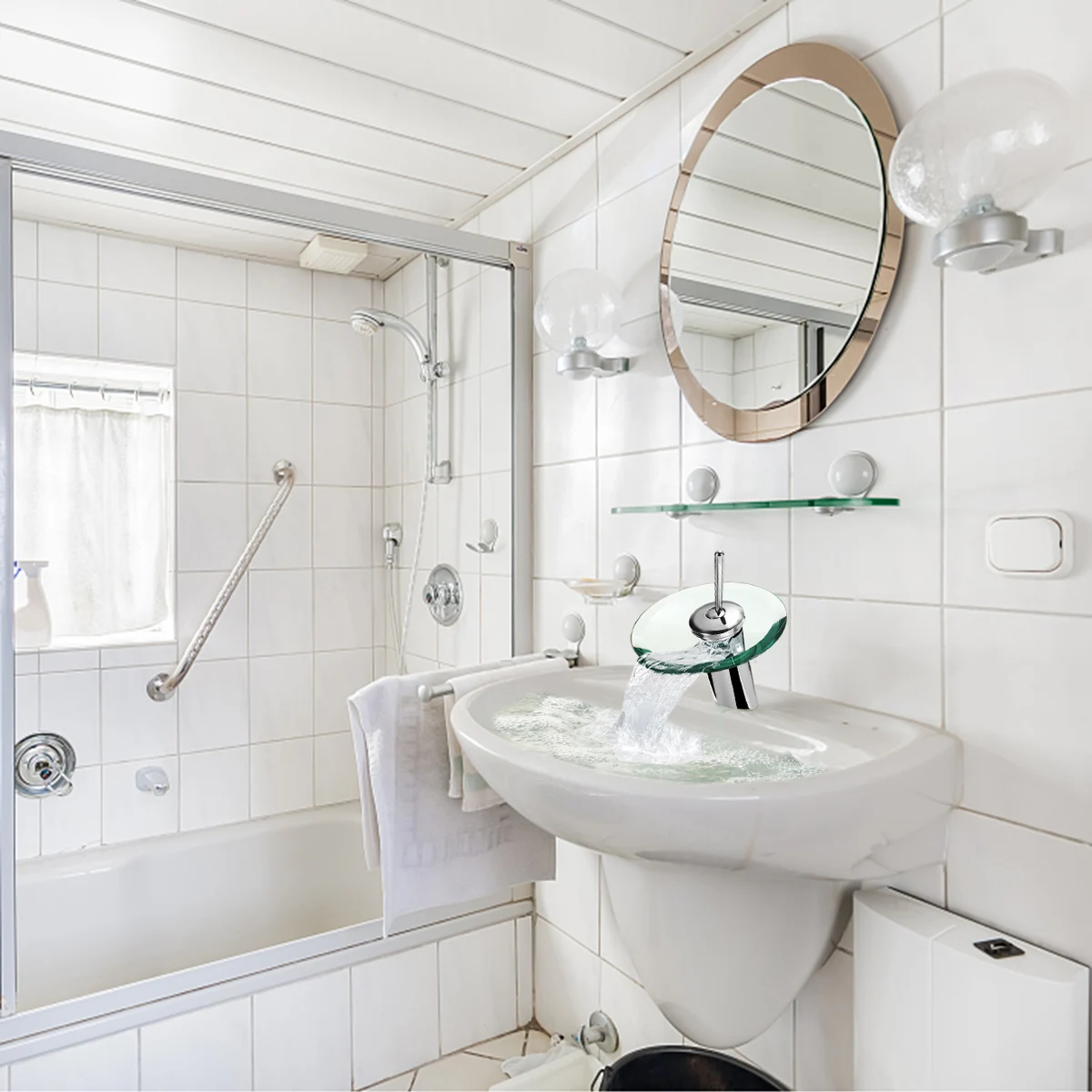 Стеклянный водопад для ванной комнаты, смеситель для раковины в ванной комнате, зеркальный кран из хромированного полированного стекла с водопроводной трубой, круглый смеситель, кран