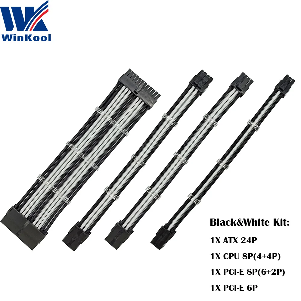 Удлинительный шнур питания WinKool с разъемом "гнездо-штекер" 18AWG, комплекты кабелей 1X ATX 24P CPU 8P PCI-E 8P и 6P