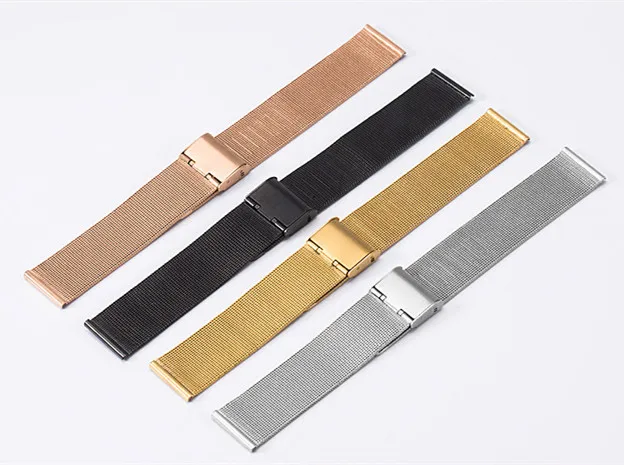 Ремешок для часов Миланская петля из нержавеющей стали, толщина 0,4 мм, 10 шт.лот, 8 мм, 10 мм, 12 мм, 14 мм, 16 мм, 18 мм, 20 мм, 22 мм, 24 мм
