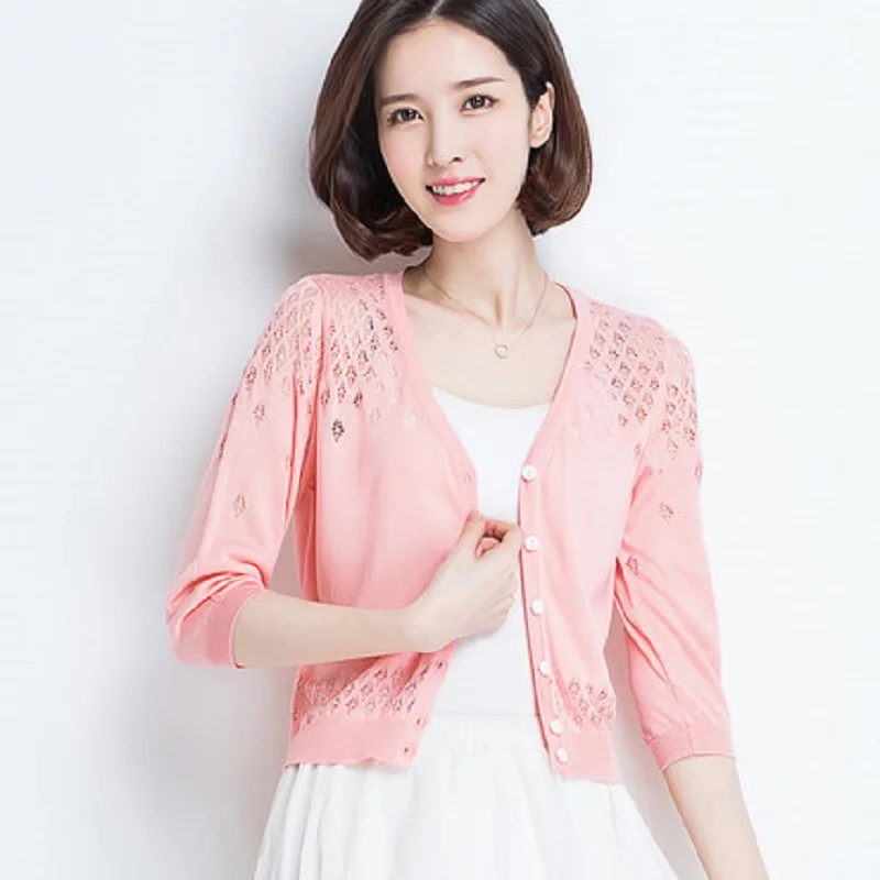 Женское тонкое пальто, короткая ажурная вязаная Маленькая шаль с рукавом в 7 точек, лето 2019