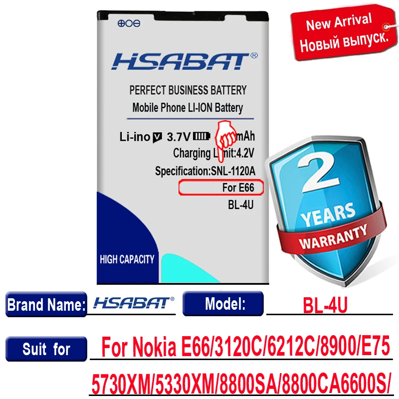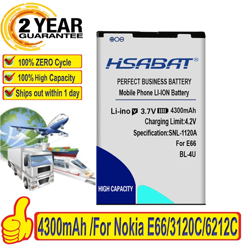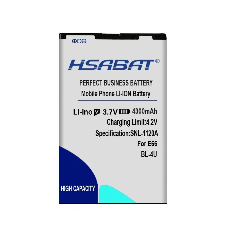 Описание:1. Литий-ионный аккумулятор2. Напряжение: 3,7 в3. Емкость:4300 мАч4. Используется для Nokia E66/3120C/6212C/8900/6600S/E75/5730XM/5330XM/8800SA/8800CA