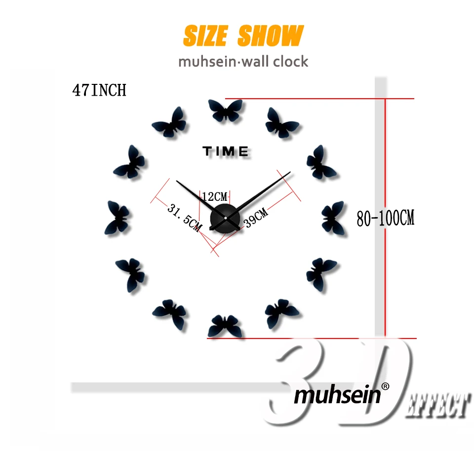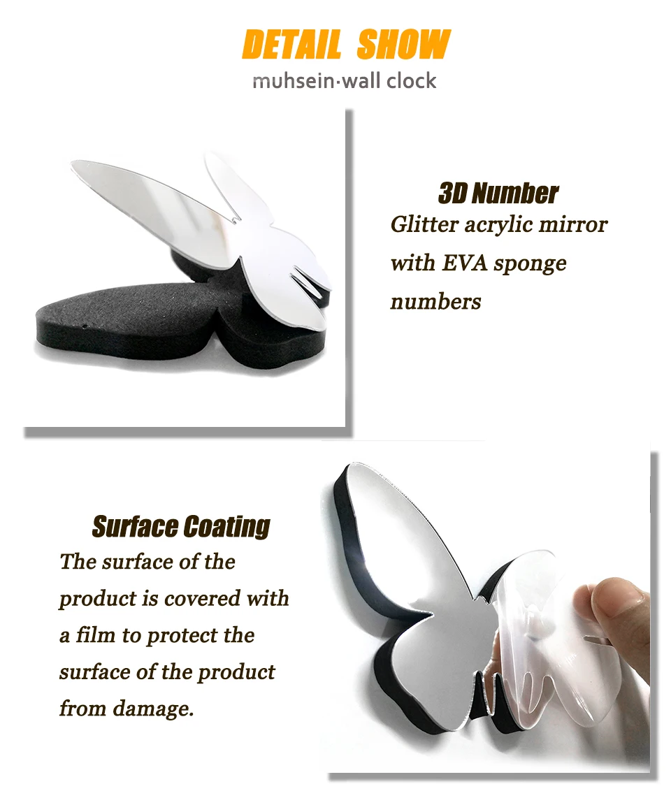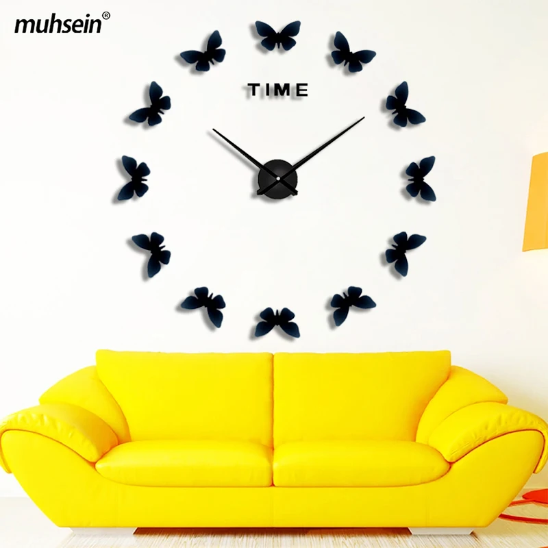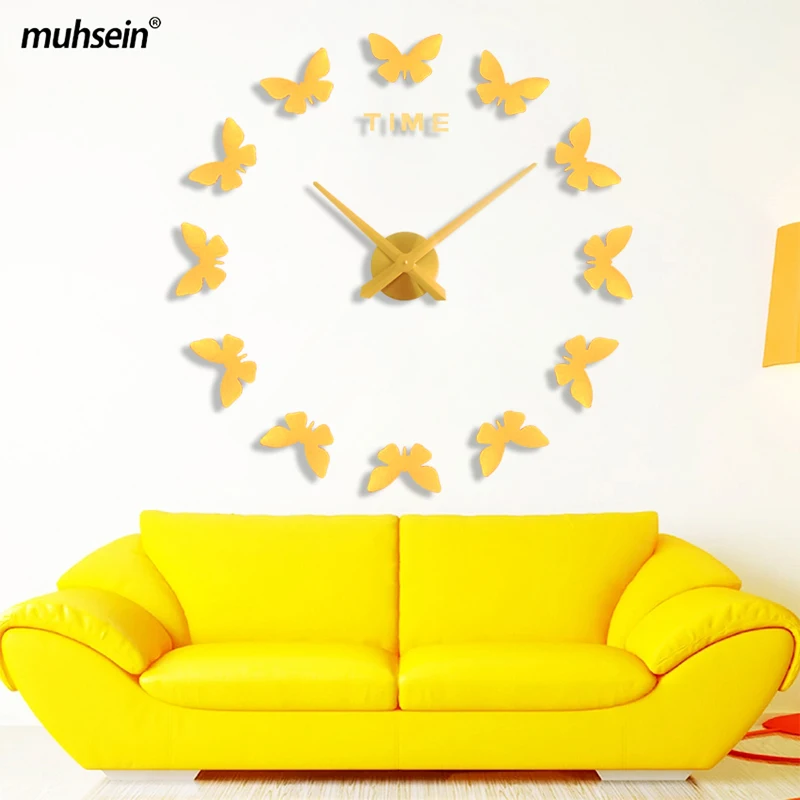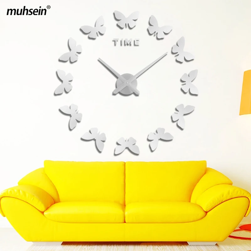 2021 новые настенные часы Muhsein с большими 3D акриловыми зеркальными часами для домашнего декора, бесшумные часы сделай сам с бабочкой, домашние часы, украшение гостиной