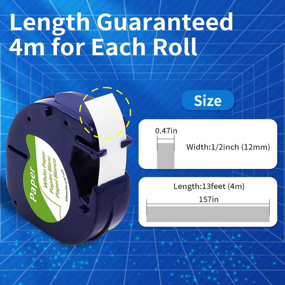 Бренд: UnistarМодель: заменить Dymo labe бумажные 91200Материал: бумага/пластикРазмер: 12 мм x 4 м (1/2 дюйма x 13 футов)Цвет: черный на белом/красном/желтом/синем/зеленом/прозрачномУпаковка: 5 шт./лот