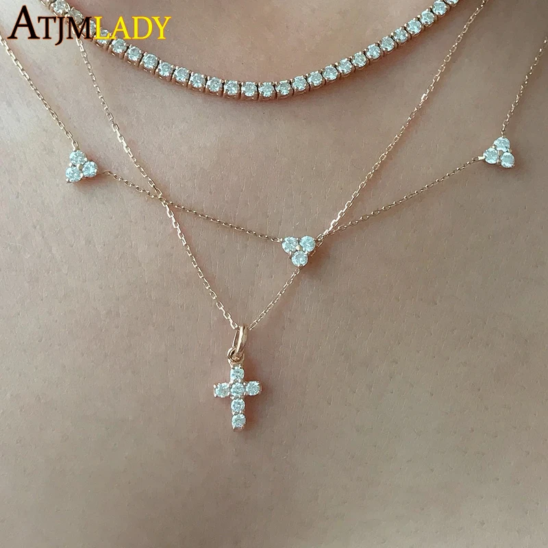 Высококачественная подвеска-крест из стерлингового серебра 2021 пробы с золотым наполнением, с фианитом 5A, маленькая милая подвеска-чокер, Классические европейские ювелирные изделия, 925