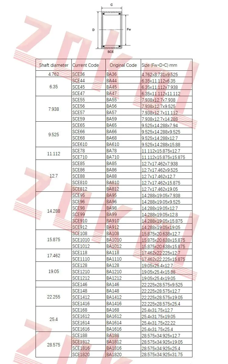 5100 шт., SCE47, SCE55, SCE57, BA66, BA67, BA68, BA118, SCE610, BA168, BA1612, BA1616, SCE99, SCE910, игольчатые роликовые подшипники с тянутой чашей