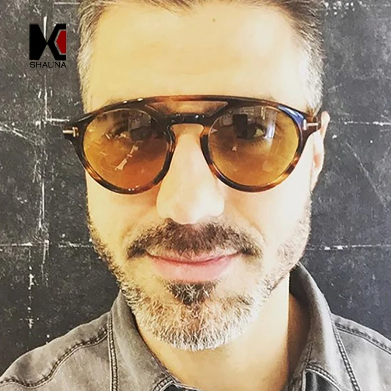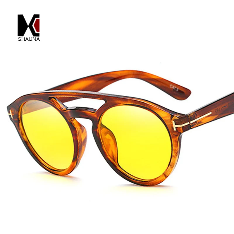 Мужские и женские круглые очки SHAUNA, круглые солнцезащитные очки с двойной перемычкой и желтыми прозрачными линзами, UV400